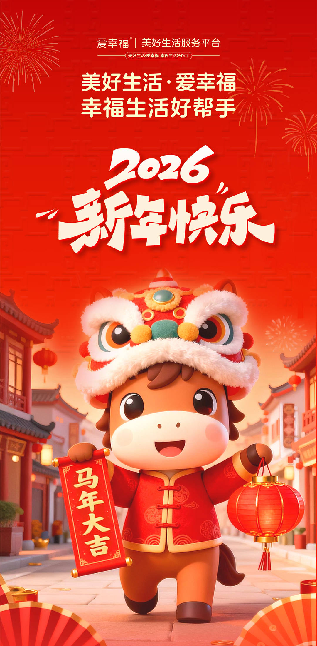 新的一年,让我们继续携手奔赴热爱,在平凡的烟火气里有诗与远方。爱幸福将继续秉承“为爱而生”的初心,如骐骥驰骋,承载家的重量,成为您可信赖的生活好帮手,于琐碎日常中,默默守护万家灯火,共筑美好生活。